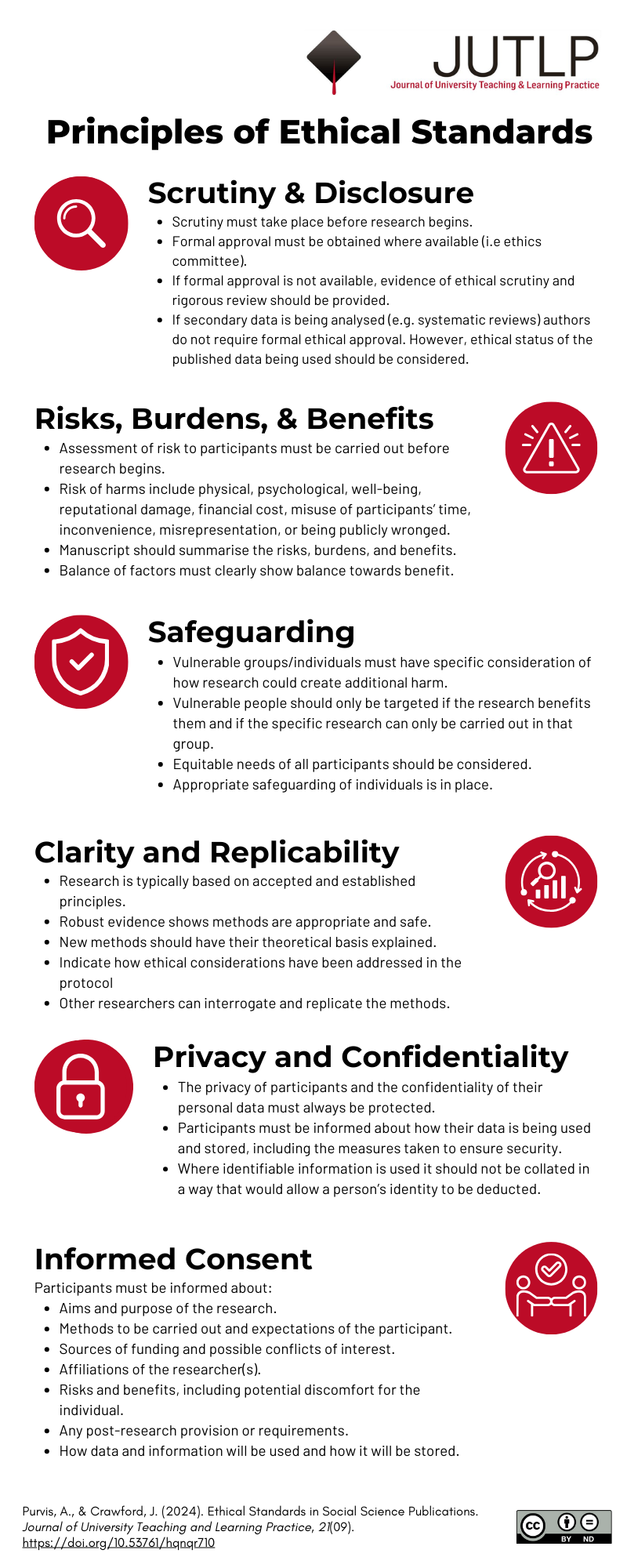 With a rise in unethical conduct in research across social science disciplines, there is clearly an issue with the approaches and understanding of requirements to meet ethical standards of research. Peer-reviewed journals rely on establishing and developing quality literature that scholars, practitioners, and policy makers can use for the benefit of humanity. Journals in higher education practice and policy aim to provide a forum for educational practitioners in a wide range of disciplines to communicate their teaching and learning innovations and outcomes in a scholarly way. For publication of research, particularly that which involves human participants, journal editors must set clear expectations and guidance for authors to adhere to recognised ethical standards, practices, and laws. Authors must declare that they have met the required standards, ensuring that independent ethical scrutiny for their study has been carried out before embarking on data collection, that the study was conducted with prior scrutiny to the methods and potential risk to participants, and that all participants were fully informed before giving their voluntary consent to the appropriate use of their data. Submitted manuscripts that do not meet these standards and expectations must therefore be rejected. This commentary offers guidance for social sciences authors, reviewers, and editors to follow, and outlines practices that should be adopted to ensure published articles meet ethical standards.